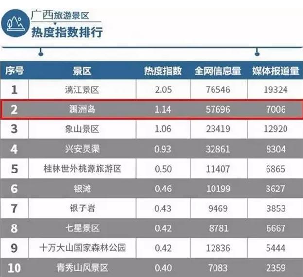 近日,《2018年8月廣西旅游行業(yè)數(shù)據(jù)報(bào)告》新鮮出爐,潿洲島位列廣西旅游景區(qū)熱度指數(shù)排行第二名。熱度指數(shù)達(dá)1.14,全網(wǎng)信息量達(dá)57696,媒體報(bào)道量達(dá)7006。這是自2017年10月份以來(lái),潿洲島熱度指數(shù)排行連續(xù)11個(gè)月位列廣西旅游景區(qū)第二名。