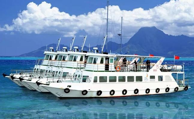 海上觀光游船最多可承載43名游客,分上下兩層,一層是空調客艙,提供麻將、KTV活動,二層是360°觀光甲板