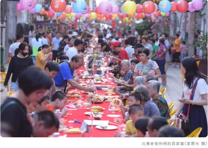 秋日“開漁季”,大量海產(chǎn)品新鮮上市,正是享受各種海味的好季節(jié)。被譽為“深夜食堂”的僑港風(fēng)情街熙熙攘攘、人頭攢動,成為游客品美食、賞月景的游玩好去處。老城景區(qū)開展的“中秋百家宴、幸福鄰里情”不僅拉近了鄰里之間的距離,同時還通過美食分享弘揚了地方飲食文化特色,營造了濃濃的中秋闔家團圓的節(jié)日氛圍。