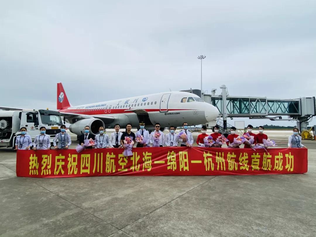 由四川航空公司執(zhí)飛的北海-綿陽-杭州航線,每天一班,每周一、三、五、七08:40從杭州出發(fā),11:35分到達綿陽,12:20從綿陽出發(fā),15:20到達北海,16:05從北海出發(fā),18:05到達綿陽,18:55從綿陽出發(fā),21:30到達杭州;每周二、四、六09:00從杭州出發(fā),11:50到達綿陽,12:35從綿陽出發(fā),15:25到達北海,16:10從北海出發(fā),18:05到達綿陽,18:55從綿陽出發(fā),21:30到達杭州。執(zhí)飛機型為320。