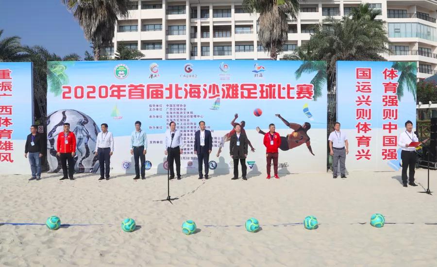 11月3日下午,2020年首屆北海沙灘足球比賽開幕儀式在我市僑港海濱浴場舉行。中國足協(xié)社會足球部部長李久全,自治區(qū)體育局黨組副書記、副局長、廣西足協(xié)主席謝強,市政府副市長歐余軍,市政協(xié)副主席、市足協(xié)顧問葉宗沛,國家沙灘足球隊領(lǐng)隊付玉培,廣西足協(xié)常務(wù)副主席龐東霞,市旅游文體局黨組書記李才能,市旅游文體局副局長梁吉棉,銀海區(qū)副區(qū)長王道波,廣西足協(xié)副主席、市足協(xié)主席李勝遠(yuǎn)等領(lǐng)導(dǎo)嘉賓出席開幕式;組委會各成員單位的領(lǐng)導(dǎo),裁判員和各參賽隊伍的領(lǐng)隊、教練員、運動員,新聞媒體,以及市體育運動學(xué)校、區(qū)市共建水上項目和社會各界群眾約500人參加開幕式。