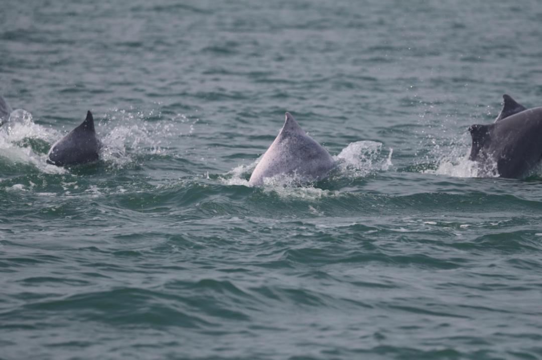 12月12日,儒艮國(guó)家級(jí)自然保護(hù)區(qū)管理中心與南京師范大學(xué),在保護(hù)區(qū)海域鯨豚船只調(diào)查發(fā)現(xiàn)最大中華白海豚群。當(dāng)天共發(fā)現(xiàn)中華白海豚種群5群次,最大群頭數(shù)30頭次。這是近三年鯨豚調(diào)查發(fā)現(xiàn)最多的一天。