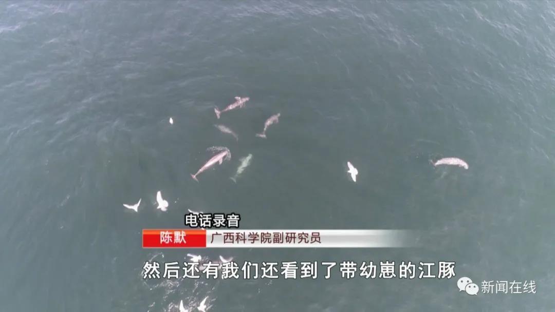 2月5日,由廣西科學院與中科院水生所組成的廣西水生生物聯(lián)合實驗室,在北海潿洲島附近海域開展鯨類調(diào)查的時候,用無人機拍攝到了一組江豚與海鷗共同捕食的場景 。
