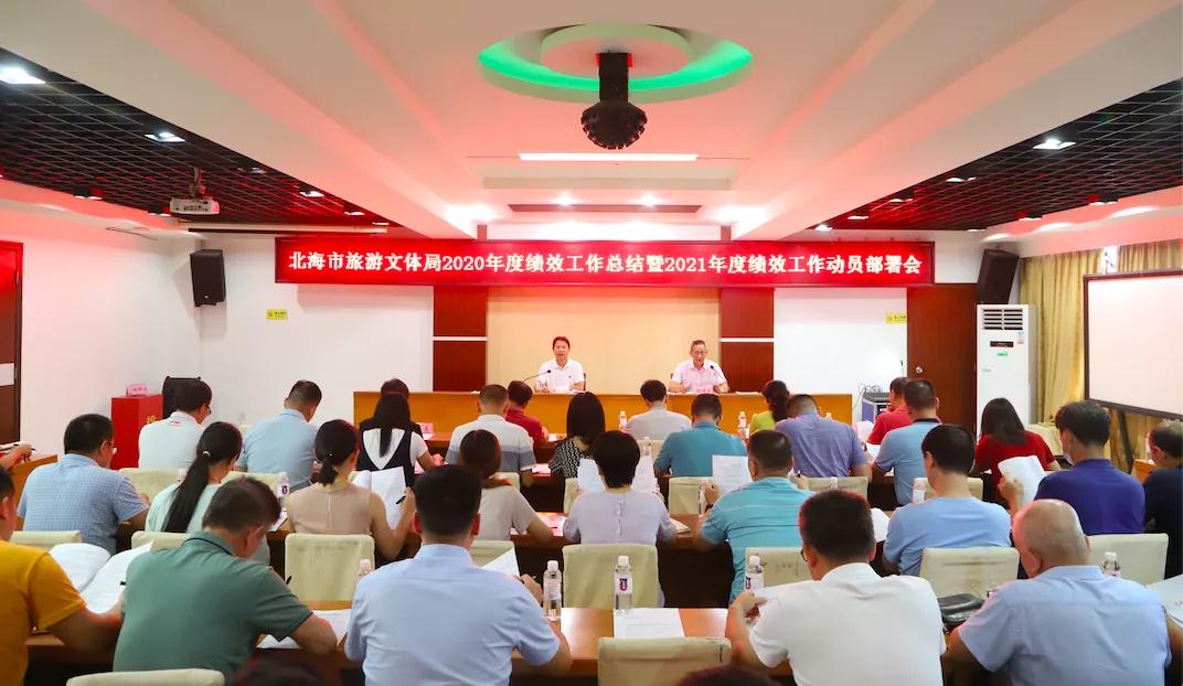 為全面總結(jié)2020年度績效工作,研究部署推進2021年度績效工作,7月7日下午,北海市旅游文體局召開2020年度績效工作總結(jié)暨2021年度績效工作動員部署會。局黨組書記李才能出席會議并作工作部署,副局長胡鐘生主持會議。會議通報了北海市旅游文體局2020年度績效考評結(jié)果,總結(jié)和點評2020年度績效工作,并研究部署2021年度績效工作