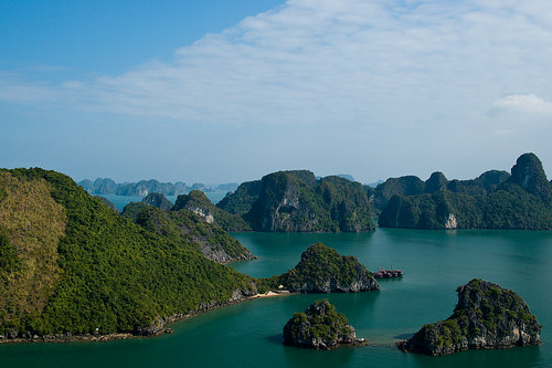 早餐后9:00參觀越南的政治中心-巴亭廣場,外觀主席府、軍事博物館、胡志明陵(每周一、五不開放)、胡志明故居、獨柱寺、外觀中國駐越南大使館[河內(nèi)景點游覽時間約2。5小時];中餐后乘車前往下龍[河內(nèi)-下龍180KM),抵達下龍灣后前往旅游碼頭乘游船,漫游世界八大自然遺產(chǎn)之一的"海上桂林"下龍灣 出海約30分鐘步行爬山游覽天宮洞,然后在返回船上繼續(xù)乘船斗雞山、狼狗石、香爐山,等下龍灣風(fēng)景[游覽約4小時];晚餐后入住酒店【含:早、中、晚餐】