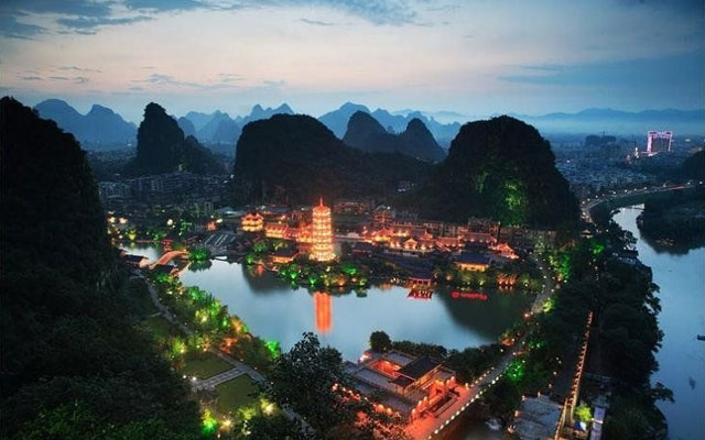 早餐后約8點(diǎn)前往榮獲兩項(xiàng)基尼斯記錄、被稱(chēng)為世界上游覽方式最多的巖洞—【冠巖】(游覽120分鐘)(停車(chē)場(chǎng)至景區(qū)門(mén)口電瓶車(chē)費(fèi)用自理)景區(qū)群山竟秀、碧水傳情、洞奇石美。欣賞美妙經(jīng)貿(mào)經(jīng)貿(mào)絕倫的冠巖四絕-“天窗、海嘯、娕雪石、金”。乘坐軌道小火車(chē)陸地穿梭、乘觀光電梯空中覽勝、乘坐小木舟漂流神秘的地下暗河;穿過(guò)可以容納上千人的巖溶棕櫚樹(shù)大廳、欣賞滴水觀音,吊橋、張果老倒騎毛驢、冠帽山等。住桂林