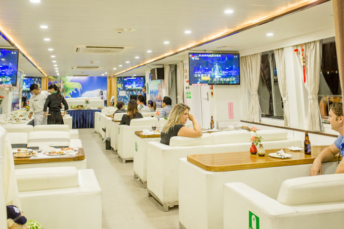 北海市北面、南面、西面三面環(huán)海。乘坐銀灘明珠號(hào)/祥和號(hào)游輪出海游(游覽時(shí)間2小時(shí)左右---安全、平穩(wěn)、舒適的雙體豪華客輪,同時(shí)容納99人、配備觀光平臺(tái),高級(jí)靠背椅、空調(diào)、高級(jí)音響設(shè)備、游船途經(jīng): 2. 古代海上絲綢之路出? 3.本土文化濃郁的地角漁村 4.海上"蒙古包"--海洋牧蠔場(chǎng) 5.外沙海鮮島  6.北海軍港、海警、海關(guān)碼頭  7.紅帆海濱  8.北海深水港  9. 海角孤峰--冠頭嶺(北嶺) 10.海上牧區(qū)--沙占魚釣魚場(chǎng)  11.海上人家  12.冠頭嶺一帶常有國(guó)家一級(jí)保護(hù)動(dòng)物白海豚出沒。——船上免費(fèi)提供:海上垂釣,東南亞風(fēng)情舞蹈表演秀、民族舞、TOP舞、趣味游戲。