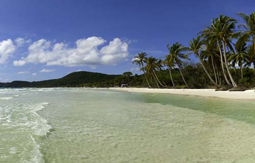 富國島屬于建江省是得天獨(dú)厚的旅游天堂,由胡志明市到富國島飛行時間約一小時。在富國島你可以出海海釣、浮潛、游泳,還有連綿數(shù)公里水清沙幼的海灘可以漫步。要坐船出海的話,需要在酒店預(yù)訂,一般當(dāng)天就能成行。這里有著名的金沙灘和原始森林,不論你是上山或下海都是不錯的選擇,F(xiàn)在馬來西亞海上游船每周都會送來300~500 名游客,說明此地已受到世界著名旅游公司的青睞。
