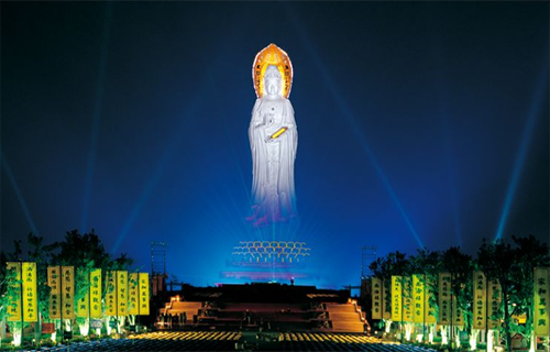 南山位于海南省三亞市西南40公里處,是中國最南端的山,屬熱帶海洋季風性氣候,其空氣質量和海水質量居全國首位,森林覆蓋率為97%,是一座展示中國佛教傳統(tǒng)文化的大型園區(qū)。 南山主要景點有南山寺、海上觀音、不二法門、觀音文化苑、天竺圣跡、佛名勝景觀苑、十方塔林與歸根園、佛教文化交流中心、素齋購物一條街等。其中,108米海上觀音是當之無愧的亮點之一,目前世界首尊金玉觀世音菩薩塑像,是聞名全海南的鎮(zhèn)島之寶。 南山歷來被稱為吉祥福澤之地。據(jù)佛教經典記載,救苦救難的觀音菩薩為了救度蕓蕓眾生,發(fā)了十二大愿,其中第二愿即是“常居南海愿”。中國傳揚千古的名句“福如東海,壽比南山”,則更道出了南山與福壽文化的悠久淵源。 南山無處不在顯示著博大精深的佛教文化和中國傳統(tǒng)文化,是世所罕見,震驚世界的佛教名山勝地。