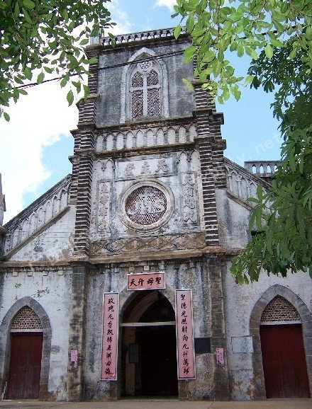 潿洲島天主教堂是法國文藝復(fù)興時(shí)期哥特式建筑,整個(gè)建筑群由教堂、男女修道院、醫(yī)院、神父樓、育嬰室等組成。當(dāng)時(shí)還沒有鋼筋水泥,建筑材料全取自島上的珊瑚、巖石、石灰拌海石花及竹木建造。一百多年來,潿洲島天主教堂雖經(jīng)歷了多少風(fēng)雨的沖刷,仍保存完好。
