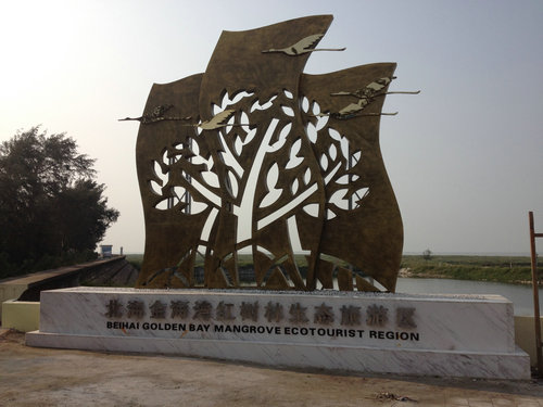 金海灣紅樹(shù)林生態(tài)休閑度假旅游區(qū)是我國(guó)極富濱海濕地風(fēng)情和漁家文化內(nèi)涵的黃金景點(diǎn)。位于北海市區(qū)東南方約15公里處,與素有“天下第一灘”之稱的國(guó)家4A級(jí)景區(qū)北海銀灘一脈相連。 整個(gè)景區(qū)面積約20平方公里,由紅樹(shù)林觀光帶、金灘和主園區(qū)三部份構(gòu)成。區(qū)內(nèi)擁有一片2000多畝的海上“森林衛(wèi)士”——紅樹(shù)林,百種鳥(niǎo)類、昆蟲(chóng)、貝類、魚(yú)、蝦、蟹等生物在此繁衍棲息,是我國(guó)罕見(jiàn)的海洋生物多樣性保護(hù)區(qū)。在這里可欣賞群鶩飛天,藍(lán)天碧海,紅日白沙的詩(shī)意畫(huà)卷,詩(shī)人王勃的“落霞與孤鶩齊飛,秋水共長(zhǎng)天一色!鼻Ч琶湓谶@里可得到驗(yàn)證。(門(mén)票價(jià)格:105)