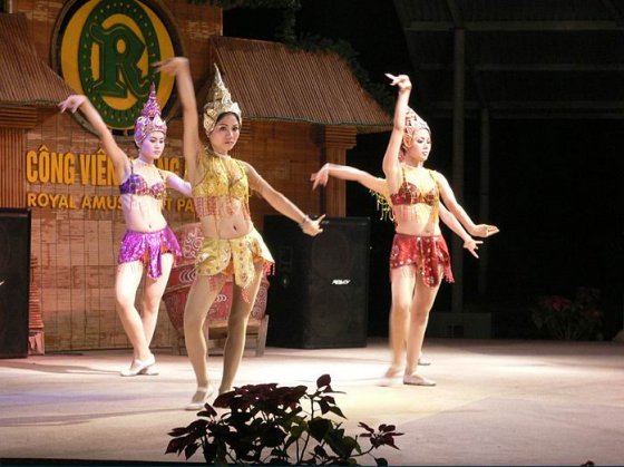皇家公園的歌舞表演和獨(dú)具越南特色的水木偶表演,很受青睞。在皇家公園里所觀賞的若干個(gè)具有地方色彩的節(jié)目中,最有代表性的是越南民間水上木偶戲、斗雞和歌舞表演。水上木偶,就是在水上表演的木偶,木偶戲表現(xiàn)的是古代越南京族青年男女向往美好生活的愿望,情節(jié)曲折、故事性強(qiáng),很有生活情趣。歌舞表演則是既有古代,也有現(xiàn)代,有民間的,也有流行的。顧名思義,水木偶是在水中演出的木偶。舞臺(tái)是用竹子搭成的建筑,稱為“水亭”。