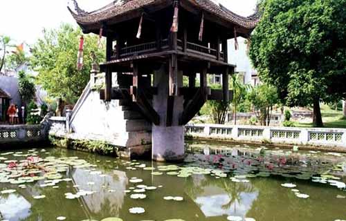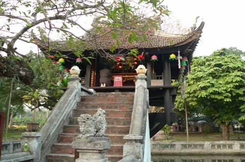 獨(dú)柱寺是越南獨(dú)具一格的古跡之一, 位于河內(nèi)巴亭廣場西南,建于1049年的李朝。因該寺建在靈沼池中一根大石柱上而得名。靈沼池為方形,池周磚砌欄桿。寺為木結(jié)構(gòu),亦方形,每邊 3 米,四面帶廊。據(jù)傳李太宗夢見觀音菩薩手托嬰兒,立于水池蓮花臺上,不久得子,乃下令仿出水蓮花建寺,故獨(dú)柱寺似出水蓮花。