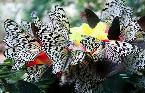 海南的亞龍灣蝴蝶谷是中國迄今為止第一個(gè)最大的網(wǎng)式蝴蝶園,占地面積1.5公頃,于1997年10月26日正式對外營業(yè)。 蝴蝶谷按蝴蝶形態(tài)設(shè)計(jì)了5個(gè)展廳,谷內(nèi)有大型網(wǎng)式蝴蝶園、蝴蝶生態(tài)觀賞園、標(biāo)本展覽館、蝴蝶繁殖園和以蝶文化商品為主的購物中心及工藝品制作室,可以使游客對蝴蝶生態(tài)過程有較感性的認(rèn)識。