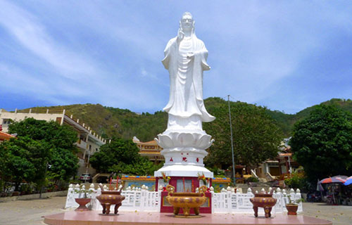 十八米觀音廟位于越南南端同奈省以南的頭頓半島上,在胡志明市東南125公里處,屬于越南中央直轄市的頭頓——昆侖島特區(qū)。風景名勝十八米觀音廟所在的頭頓市面對湄公河和西貢河入海處,臨海有不少海灘。這里是海上進出胡志明市的通道,原來是一個小漁村,在法國殖民時期被開辟為度假地,成為越南最早的旅游避暑中心。頭頓是越南最富盛名的海濱城市,這里終年都沐浴在明媚的熱帶陽光下,湛藍的海水令人忍不住跳下去。在清涼的水中,享受徐徐吹來的海風;或在金色的沙灘上,看金色余暉下比基尼女郎的嬌美身影,十分愜意。